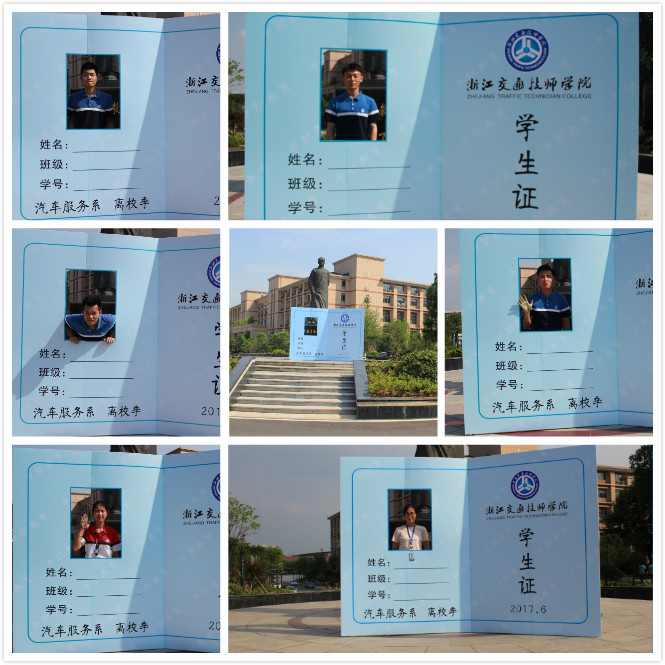 如果要说校园记忆的话,每个人都有自己独特的一份,其中有一个一定是你每次买火车票时都可能想起的学生证吧?学生证的背后贴着火车票优惠券,连着家和学校距离……离校后很多人会把优惠券撕掉后的学生证留下保存,但随着岁月变迁,曾经的记忆包括学生证都封存在角落里,不如现在来一张学生证照片,把青春和记忆留存在相册和朋友圈里!于是,汽车服务系的学生别出心裁地制作了一个立体学生证供离校学子们留影纪念,不少老师也跑来重回18岁呢!