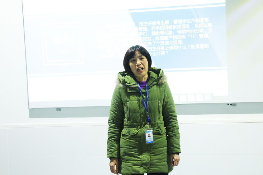 沙龙活动分为小组讨论、案例分析交流、班主任感言三个环节。同时,在案例分析交流时,“抢凳子”的游戏互动让活动现场增添了几分乐趣。在班主任发言后,学院副院长汪泽建对此次沙龙活动做了精彩点评。他说到,系部举办班主任德育研讨沙龙活动,是为了进一步增强班主任之间的交流协作,讨论分享中各位班主任对学生日常管理工作的实际案例进行有效分析,并提出各自有效的解决方案,这表明我们的德育研讨活动举办的很成功。希望今后班主任在日常管理工作中必须坚持好我们教师教书育人的本分,做到“四心”,即“爱心、细心、用心、换心”。要放大学生的个人特长、优点。选好班干部,培养他们的团结协作能力,这样我们的班级建设就会愈发强大。